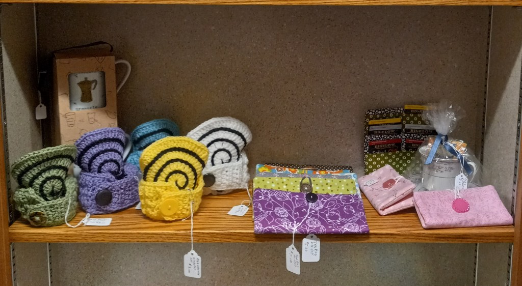 - Hand-sewn items (tea bag holders, bowl cozies, eyeglass cases and more)