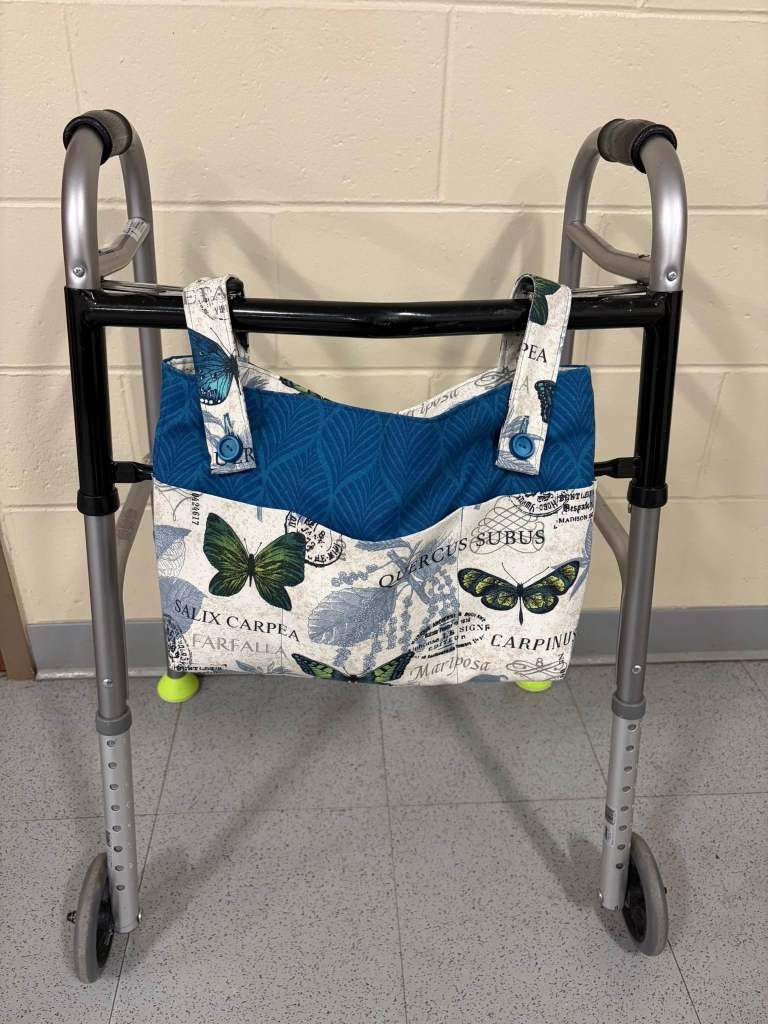 Keep your items with you while using your walker. There is a large pocket in the center for bigger items with multiple outside pockets (front and back) for organization and easy access to your belongings. The bag attaches by buttoning straps over the front bar or sidebar of a walker.