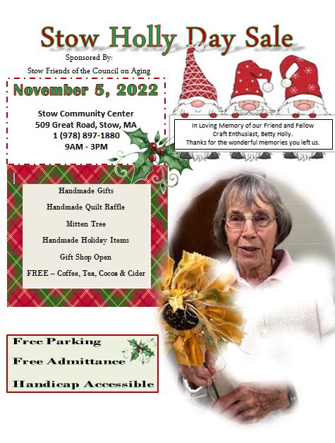 Our thanks to our committed volunteers and valued customers for supporting the SFCOA (Stow Friends of the Council on Aging) in our fundraising efforts during the Stow Holly Day Sale.